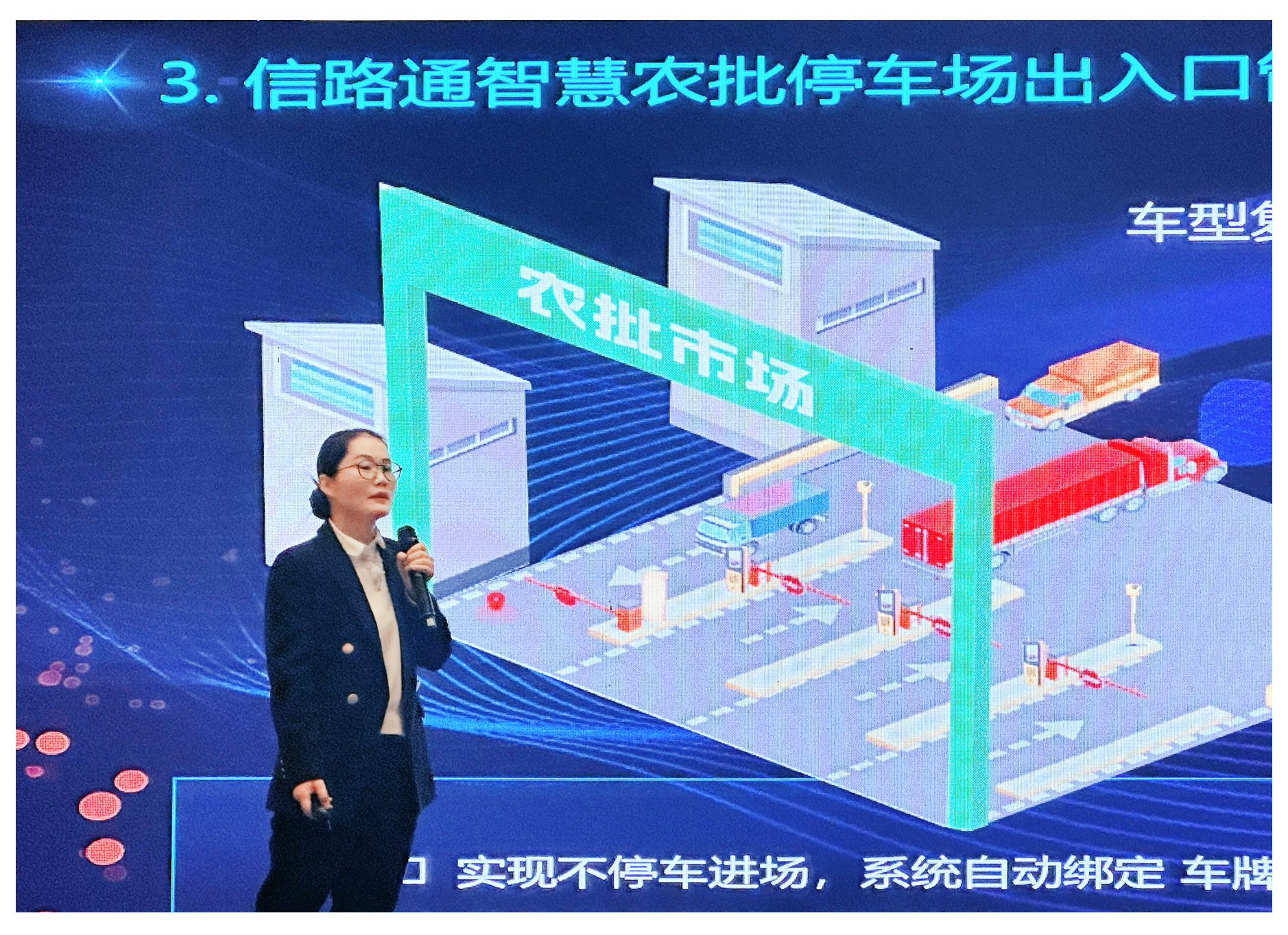 11月29-30日,由全國城市農貿中心聯合會主辦的2023年中國農產品批發市場行業年會暨無錫天鵬集團70周年慶在無錫舉行。商務部原副部長、第十三屆全國政協經濟委員會副主任房愛卿,原國務院參事、第十一屆全國政協委員、原國家質檢總局副局長葛志榮,原國務院參事劉志仁,中國商業聯合會副會長傅龍成,中國出入境檢驗檢疫協會會長王新等嘉賓出席會議。本次大會由全國城市農貿中心聯合會會長馬增俊主持,來自全國農貿行業、專業院校及研究機構的500多名各界精英,圍繞數字化時代農產品批發市場的趨勢與創新、RCEP全面生效后農產品流通體系的新趨勢、預制菜的機遇與挑戰等話題,進行了熱烈而富有成效的交流探討,共研中國農產品批發市場高質量、可持續發展新路徑。深圳信路通智能技術有限公司智慧園區事業部總監陳燕華受邀出席,并發表了題為《停車運營數智化升級 ,助力智慧農批高質高效發展》的精彩演講。