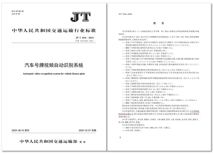 近日,《汽車號牌視頻自動識別系統(tǒng)》行業(yè)標準正式公布,標準由全國交通工程設(shè)施(公路)標準化技術(shù)委員會(SAC / TC 223)提出并歸口,主管部門為交通運輸部,將于2024年12月1日起正式實施。標準起草單位包括交通運輸部公路科學研究所、中路高科交通檢測檢驗認證有限公司、北京信路威科技股份有限公司、浙江高信技術(shù)股份有限公司、蘇州思卡信息系統(tǒng)有限公司、浙江交投高速公路建設(shè)管理有限公司。